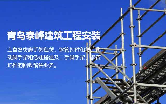 青島泰峰建筑工程安裝有限公司主營各類腳手架租賃、鋼管扣件租賃、移動腳手架租賃建搭建及二手腳手架、鋼管扣件的回收銷售業(yè)務。公司實力雄厚,擁有鋼管約3000噸、扣件70萬只、鋼笆7萬多片塔吊、人貨電梯多臺;總資產達到1000多萬元。是一家具有腳手架搭建、水電安裝專業(yè)承包施工資質的企業(yè),并成為青島市五金協(xié)會的會員單位。且多次參與高層建筑、建筑裝修、玻璃幕墻、橋梁、隧道、地鐵、電廠維修施工、造船等行業(yè)的施工,并獲得施工單位的一致好評。 人無信不立,有信則強公司以“薄利多銷、服務取勝”為經營宗旨...